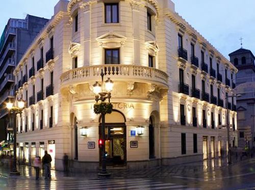 グラナダの中心部に位置するクラシカルな外観が目を引くホテル。